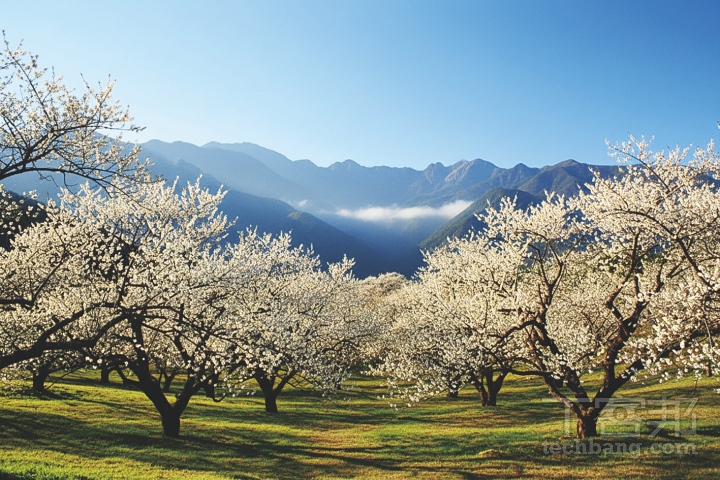 南投信義鄉的梅花寒流過境後,往往大面積綻放,十分壯觀。