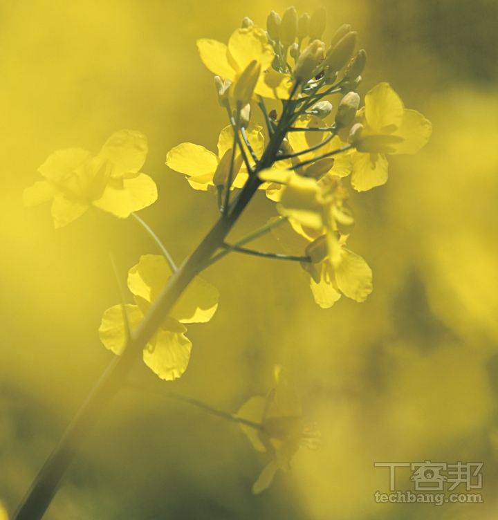 長焦距鏡頭適合特寫單朵梅花或油菜花,可輕易讓主體突顯出來。