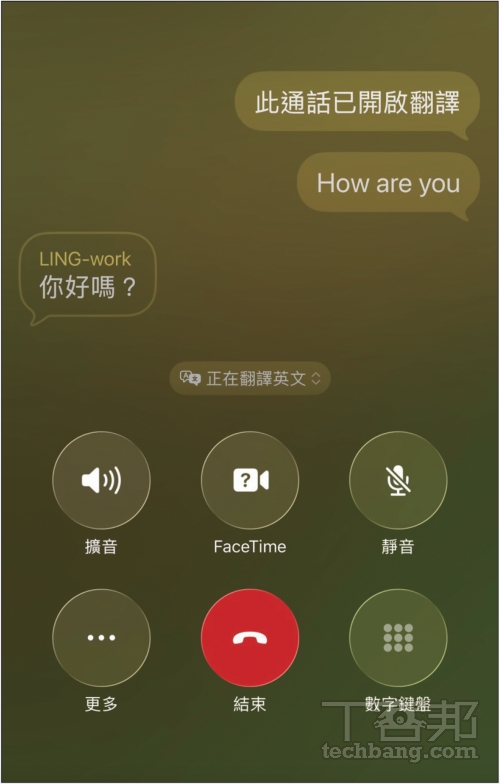 步驟 5:在通話前會提示雙方正在進行翻譯對話,接著於畫面中也可以看到對話內容。