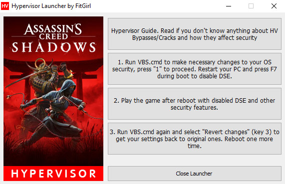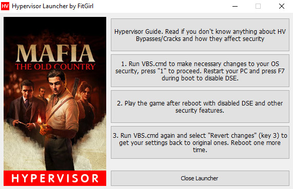 - Run “VBS.cmd” in the game folder AS ADMINISTRATOR! – you might want to download fresh version here: https://fitgirl-repacks.site/hypervisor-guide/